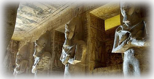 mètres de haut, y sont adossés représentant le Pharaon Ramsès II. Le